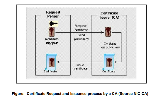 The applicant for the Certificate must generate his/her own key pair and send the public key to the CA with some proof of his/her identity. The CA will issue a Digital Signature Certificate containing the public key. The CA will digitally sign the certificate using its private key and then send the certificate to the applicant. The CA will check the applicant’s identification before it generates the certificate and signs the request. Different Certifying Authorities may issue certificates with varying levels of identification requirements. One CA may insist on seeing the Identity card while another may want a signed letter authorizing certification from anyone requesting a certificate.